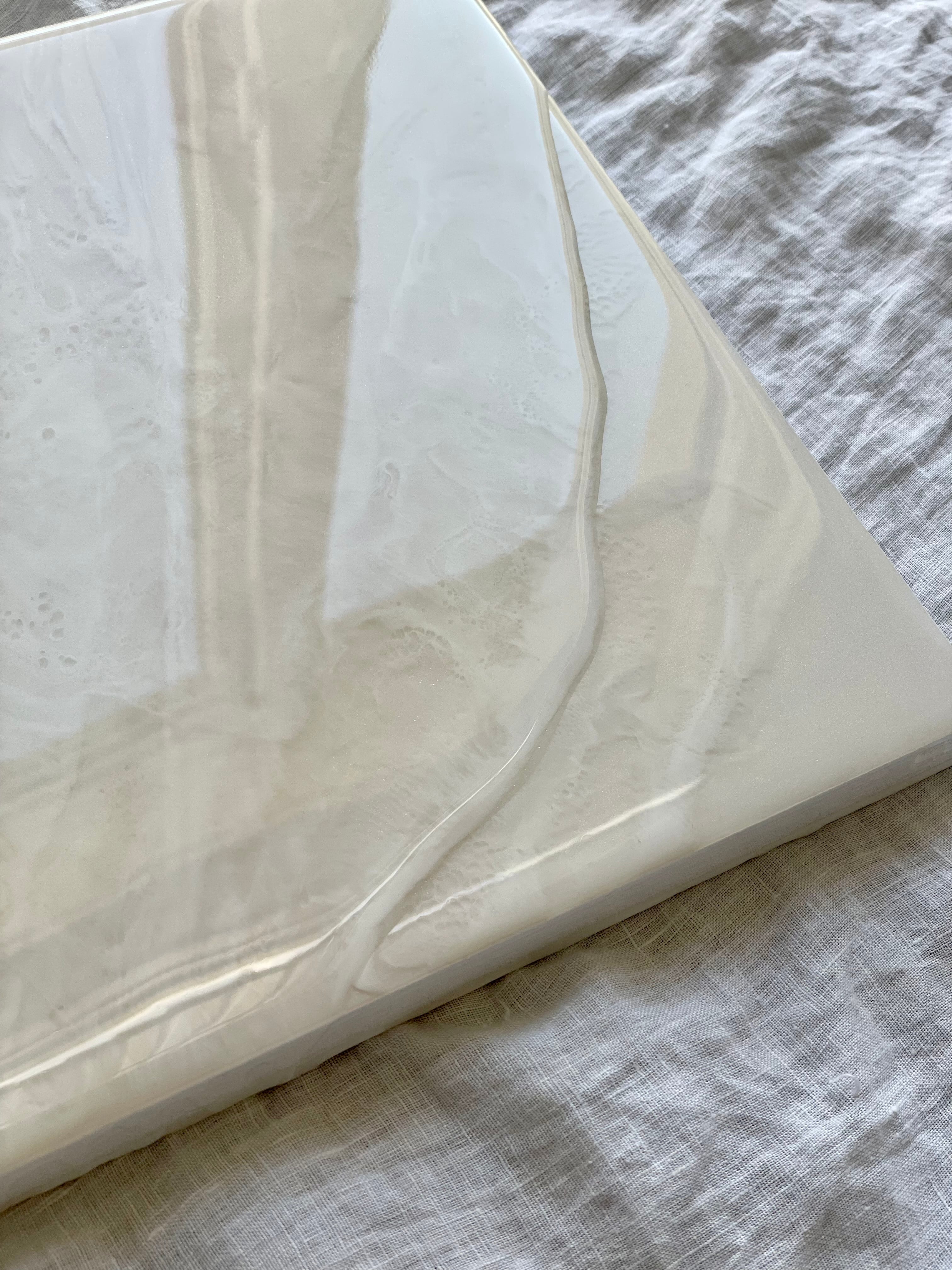 アート用をシナベニヤパネルに、レジンを一層一層丁寧に重ねて海を描いています。層が硬化後、その上から層を重ねていき、奥行きのある作品作りを心掛けております。一枚完成するのに数日かかりますが気持ちを込めてお作りしております。