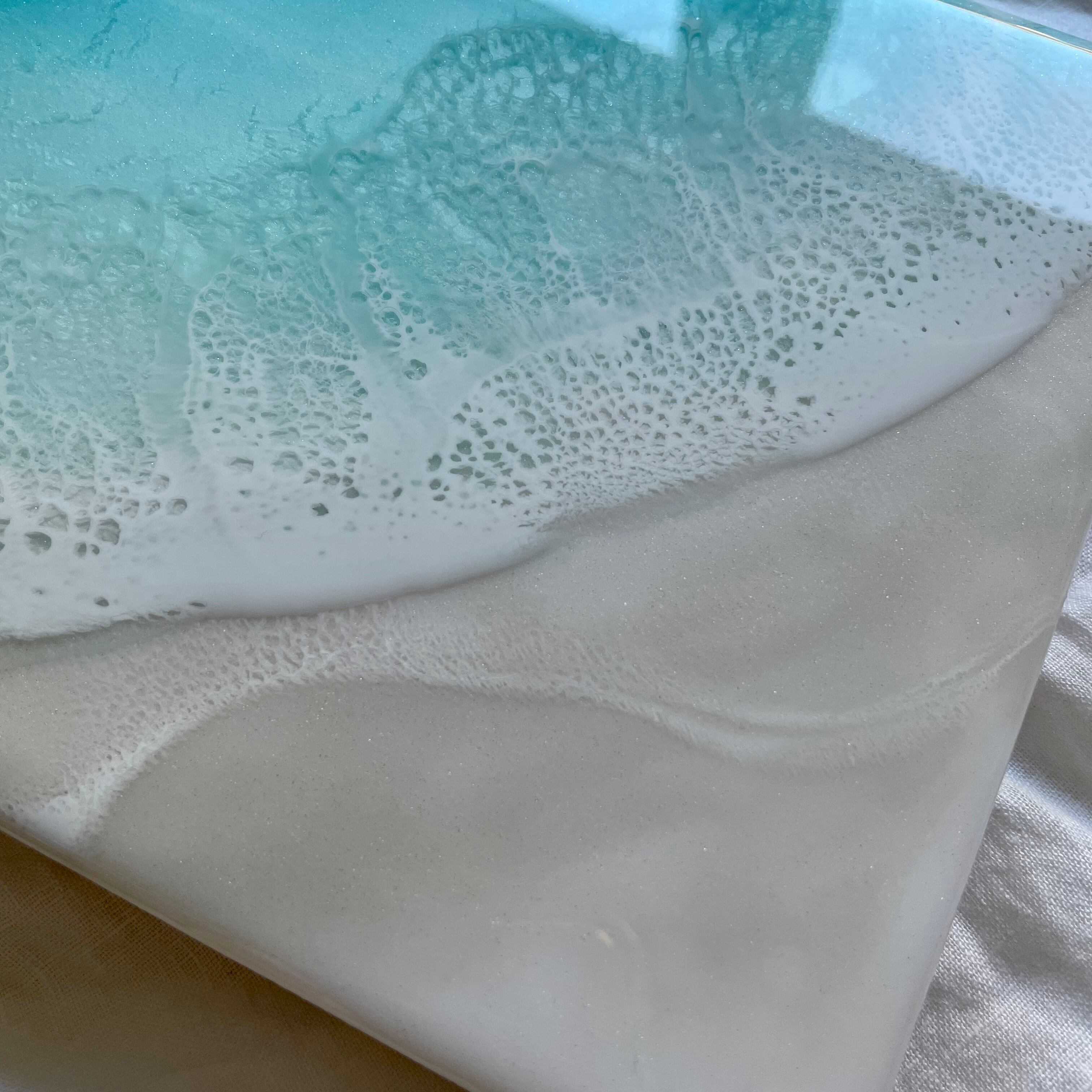 アート用シナベニヤパネルに、レジンを重ねて海を描いています。