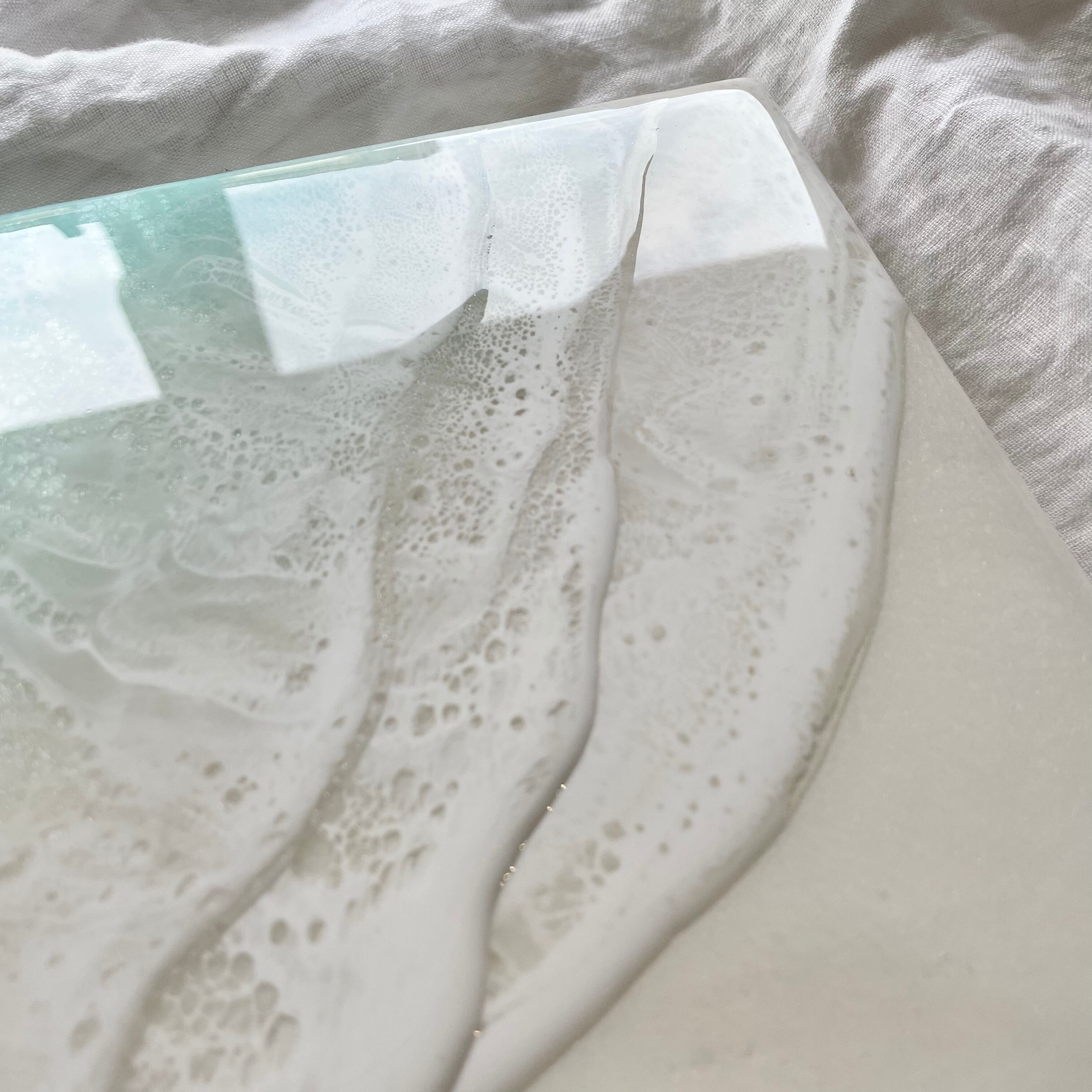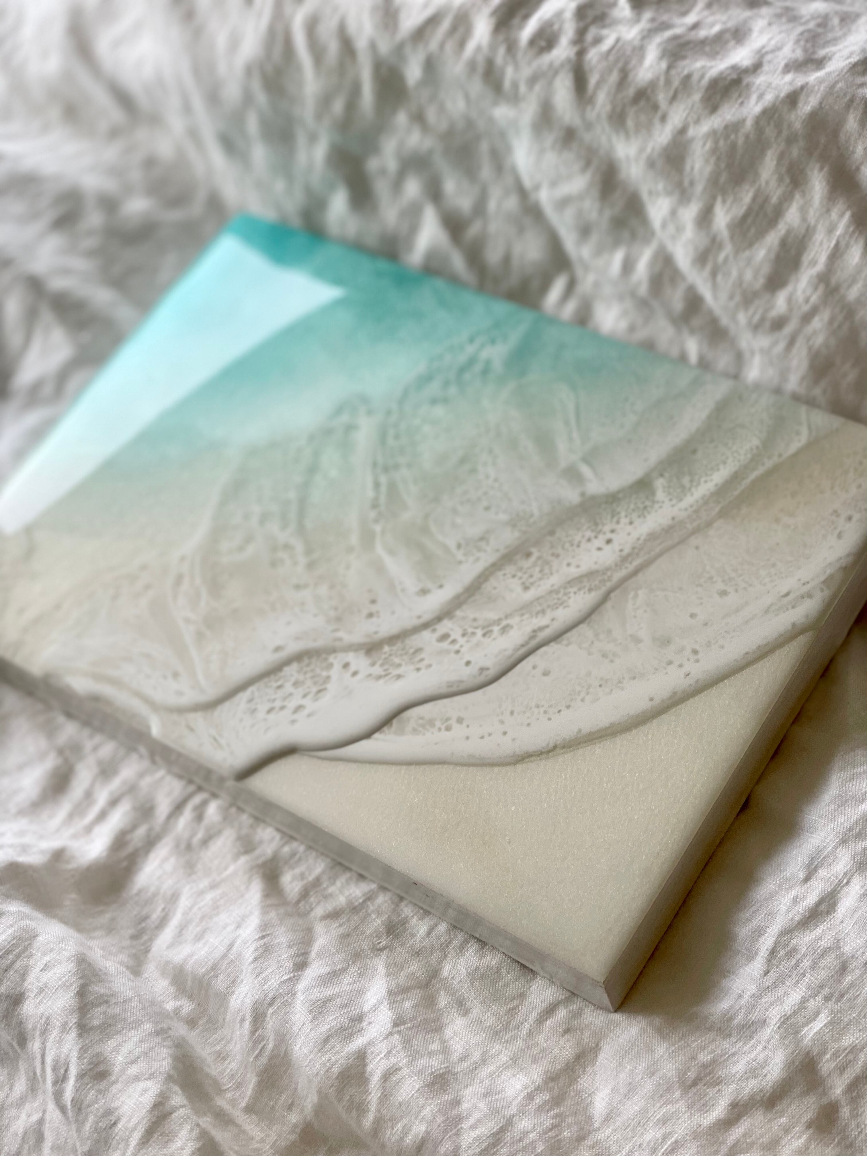 アート用シナベニヤパネルに、レジンを重ねて海を描いています。