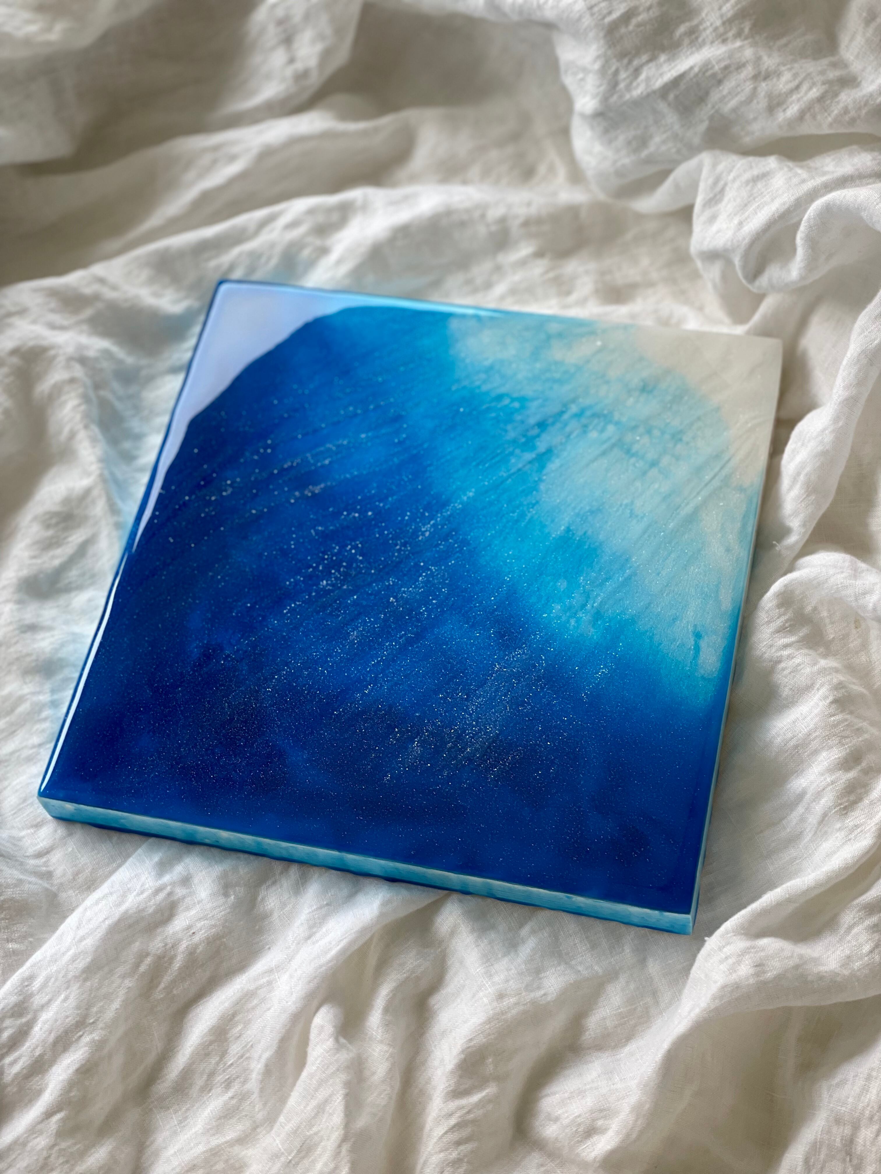 アート用シナベニヤパネルに、レジンを重ねて海を描いています。